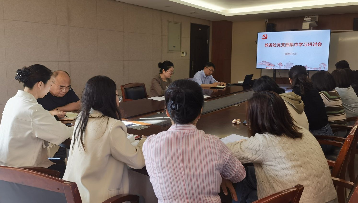 5月21日上午,在希望大道校区行政楼428会议室,教务处党支部“第一议题”学习研讨习近平总书记重要讲话精神及怀进鹏部长重要讲话。党支部书记余晓红主持,教务处全体党员及科级以上干部参会。