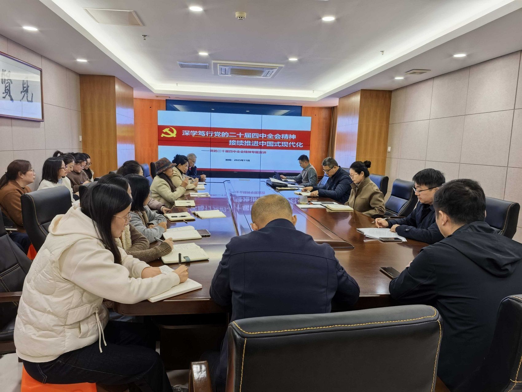 11月28日下午,在希望大道校区行政楼328会议室,教务处党支部举办专题学习会,学习学校召开学习贯彻党的二十届四中全会精神专题辅导报告会的会议精神。党支部书记余晓红主持,教务处全体党员及教职工参加。