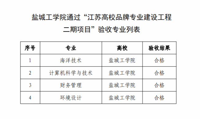 近日,江苏省发布《省教育厅关于公布2024年度江苏高校品牌专业建设工程二期项目验收结果的通知》(苏教高函〔2024〕18 号),我校环境设计、海洋技术、计算机科学与技术、财务管理等4个专业全部通过验收。