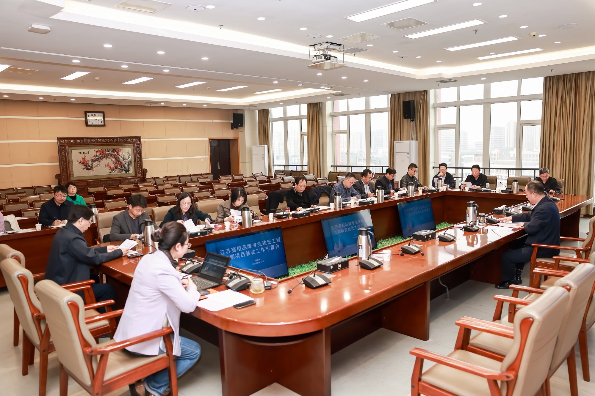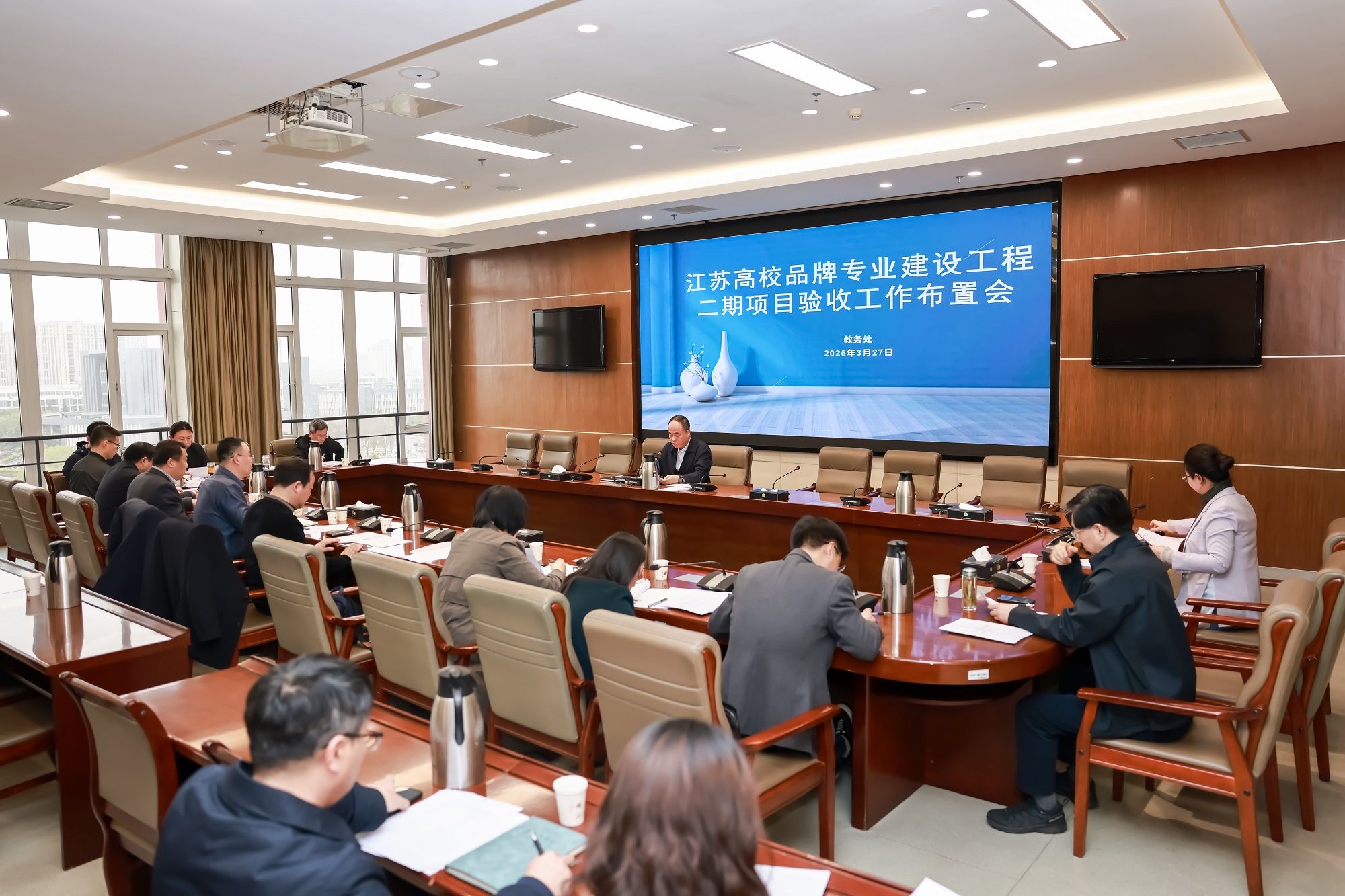 3月27日下午,在希望大道校区行政楼9楼视频会议室,学校召开2025年度江苏高校品牌专业建设工程二期项目验收工作布置会,党委副书记、校长邵荣出席会议并讲话。2025年度省品牌专业二期项目验收专业所属二级学院院长及相关职能部门负责人参加会议。教务处处长余晓红主持。