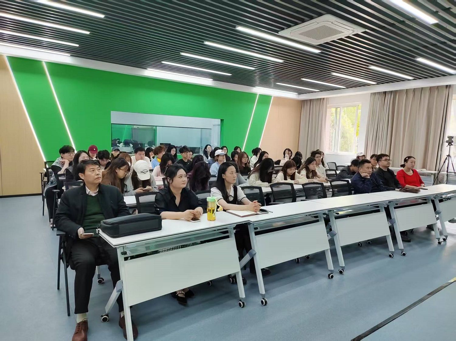 在全面推进美育教育、深化高校艺术素养教育改革的时代背景下,为提升师生对中国美学精神的理解,推动艺术教育与专业教学深度融合,5月7日上午,根据江苏省教育厅相关通知要求,教务处组织设计艺术学院50余名师生,在博学楼B105多媒体教室,集中观看中国艺术大讲堂直播活动。