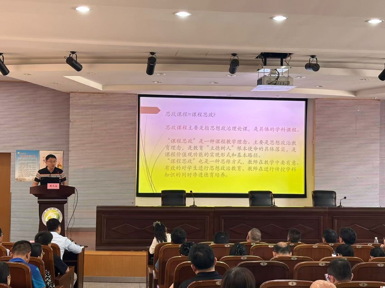 周天池作题为《课程思政的起源与实质》的报告,介绍课程思政的提出和内涵发展,阐述课程思政的精神实质和数字化赋能课程思政的新要求,说明了我校课程思政建设的任务、目标、路径以及实施课程思政的重大意义。