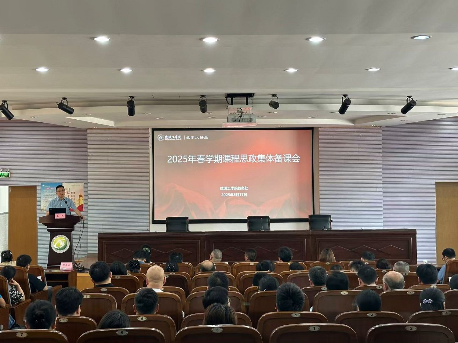 6月17日下午,学校在南校区土木馆报告厅举办课程思政集体备课会,校党委常委、副校长王伟出席。马克思主义学院副院长马荣、土木工程学院副院长李富荣、纺织服装学院程冰莹副教授先后作主题报告。各二级学院教学院长、教科研办公室主任、专业系主任、课程思政示范课程教师代表等130 余人参会。教务处副处长周天池主持。
