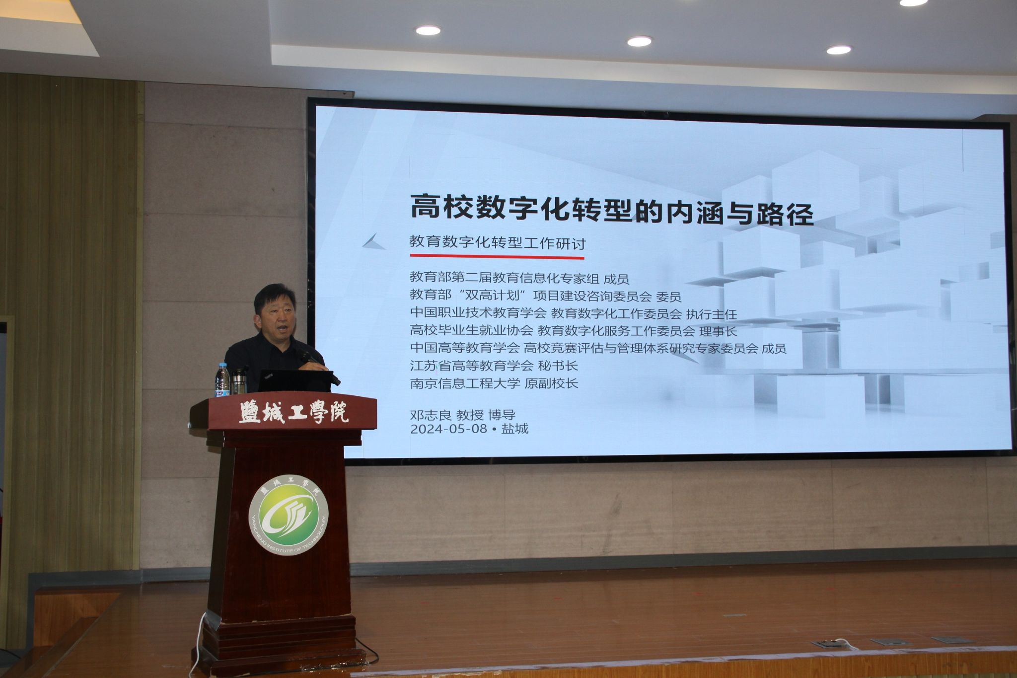 5月8日下午,我校在希望大道校区机械馆报告厅举办数字化教学专家报告会,邀请江苏省高等教育学会秘书长、南京信息工程大学原副校长邓志良教授作题为《高校数字化转型的内涵与路径》的专题报告。党委常委、副校长王伟主持报告会,各二级学院院长、教学副院长、教科研办公室主任、专业系主任、实验中心主任、教务处相关工作人员等140余人参加。