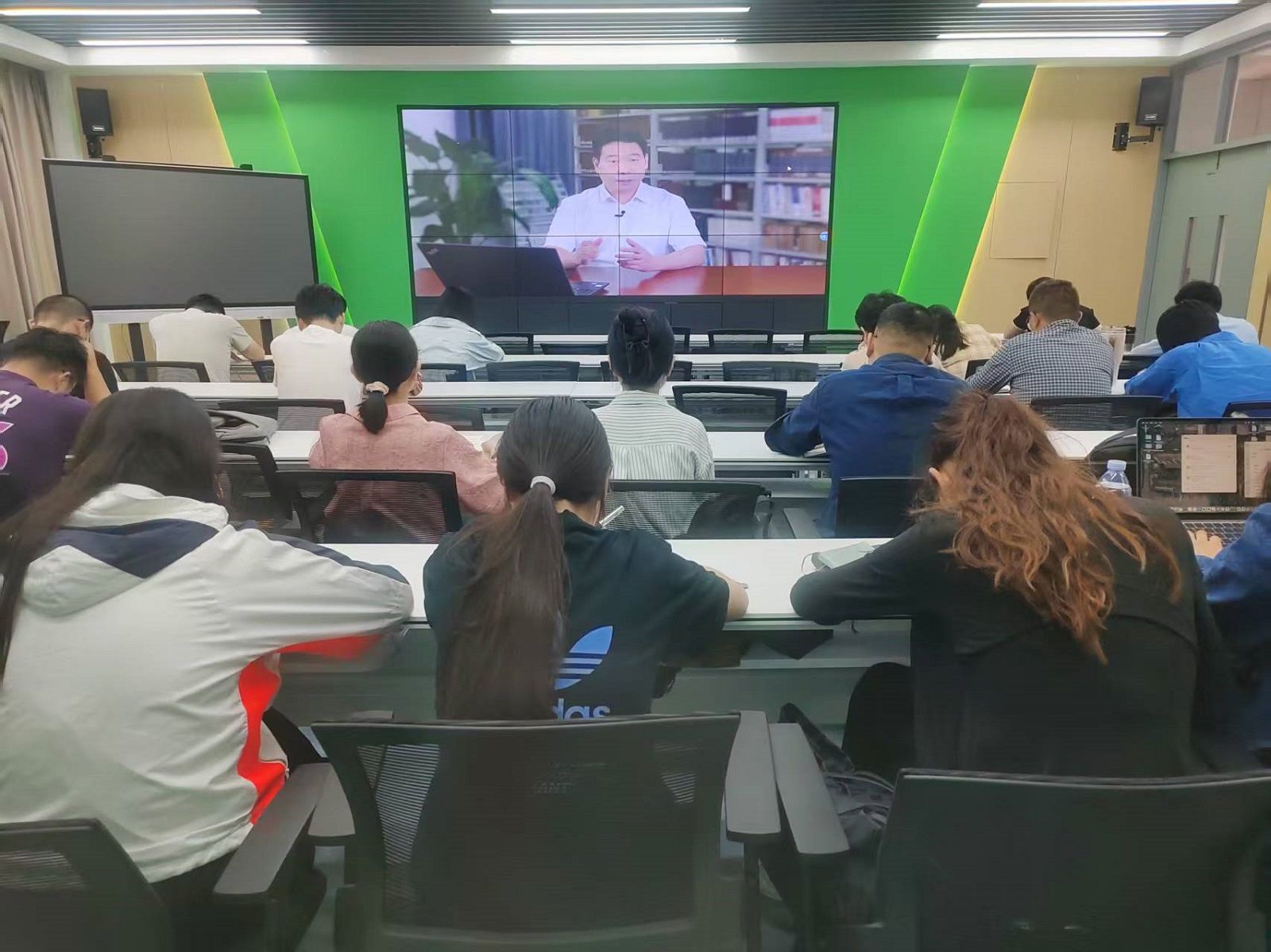 9月22日上午,学校教务处组织新教师在博学楼B105集中观看了教育部举办的习近平文化思想大讲堂第一讲直播活动。