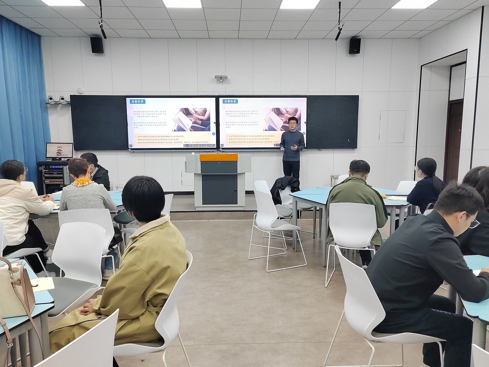 培训过程中,教师们认真聆听、积极记录,并不时就备赛过程中遇到的问题与孙磊总监进行交流探讨。大家纷纷表示,此次培训内容丰富、针对性强,不仅让大家对教创赛有了更全面、更深入的认识,也为后续备赛工作提供了清晰的思路与实用的方法,收获颇丰。