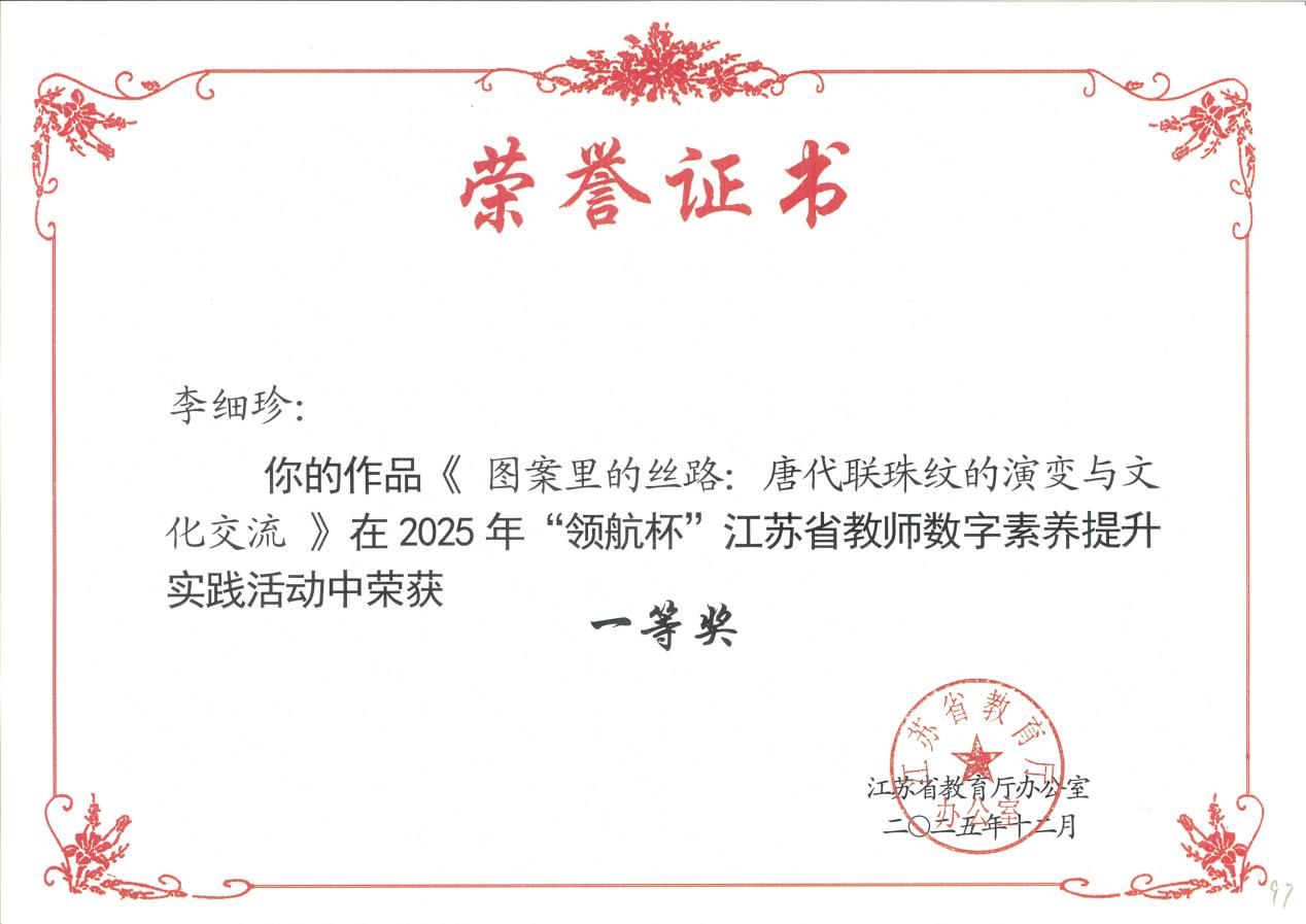 近日,2025年“领航杯”江苏省教师数字素养提升实践活动比赛结果正式公布。我校设计艺术学院李细珍老师、汽车学院许莉娟老师凭借扎实的教学功底、创新的教学设计及娴熟的信息技术应用能力,在众多参赛选手中脱颖而出,分别斩获一等奖、二等奖,充分彰显了我校在教师数字素养培育方面的显著成效。
