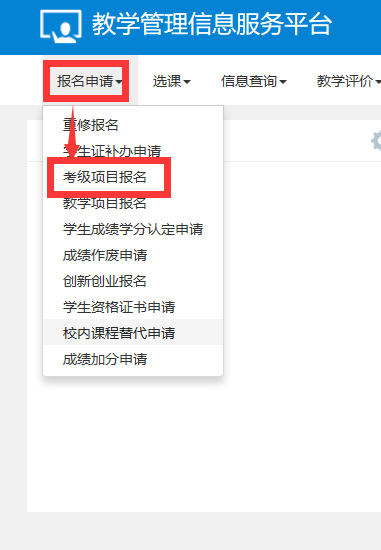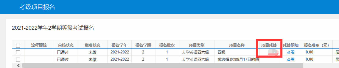 点击报名申请----考级项目报名,然后可以进入查看成绩