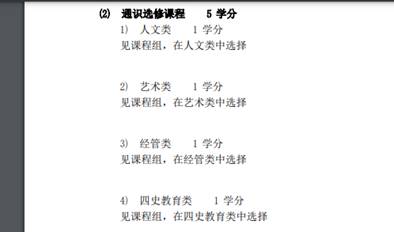 1、选课前,请进入教务系统查询个人信息—>培养方案(下图)中是否有沟通与写作类、环境与可持续发展类、四史教育类,如有才需要选课,否则无需选课。如果之前学期已修读且成绩为不合格,只能参加重修报名。沟通与写作类课程为《影响力从语言开始》和《有效沟通技巧》,环境与可持续发展类课程为《家园的治理:环境科学概论》和《全球变化生态学》,四史教育类课程为《党史》、《新中国史》、《改革开放史》、《社会主义发展史》。