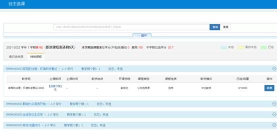 2、选课结束时间:3月15日11:00。选课结束后无法退选,也无法再进行选课。